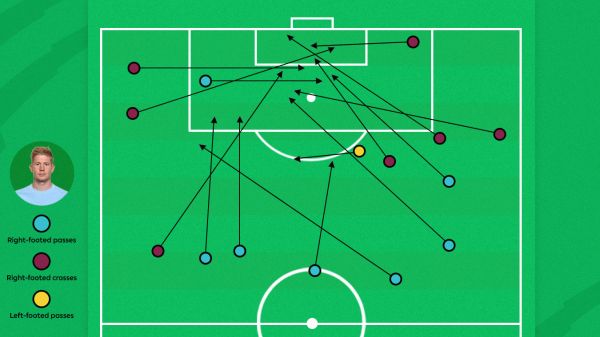 Ο Βέλγος δεν καθυστερεί ποτέ το παιχνίδι. Παίζει πάντα γρήγορα. Όχι βιαστικά. Γρήγορα. Τεράστια διαφορά. Με το που πάρει τη μπάλα στα πόδια του ψάχνει –και συνήθως- βρίσκει πάντα τρόπο να επιτεθεί. Σπάνια θα τον δεις να κρατάει πολύ ώρα τη μπάλα στα πόδια του ή να επιχειρεί ντρίμπλες. Ενώ δεν θα το δεις –σχεδόν- ποτέ να γυρνάει τη μπάλα πίσω! Η άφιξη του Ρόντρι και ο τρόπος που αυτός αγωνίζεται δείχνει να έχει απελευθερώσει ακόμα περισσότερο τον Ντε Μπρούιν, που δείχνει έτοιμος για μια σούπερ σεζόν.