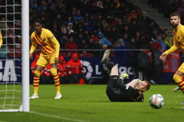 Στο 20′ και πάλι η Ατλέτικο έφθασε κοντά στο 1-0 όμως το όμορφο σουτ του Εμρόσο βρήκε σε ετοιμότητα τον Τερ Στέγκεν. Το επόμενο 15λεπτο ανήκει στους φιλοξενούμενους με τον Λουίς Σουάρες να σπρώχνει την ομάδα του στην επίθεση. Ο Ουρουγουανός μάλιστα είχε τη στιγμή του στο 32′ όμως το σουτ που επιχείρησε κατέληξε μόλις άουτ. Μέχρι το τέλος του ημιχρόνου οι δύο ομάδες απώλεσαν από μία καλή στιγμή. Στο 40′ ο Μοράτα είδε τον Τερ Στέγκεν να πραγματοποιεί εκπληκτική απόκρουση σε σουτ έμοιαζε να καταλήγει στην εστία. Δύο λεπτά αργότερα ήταν η σειρά του Πικέ να σημαδέψει το δοκάρι της Ατλέτικο με όμορφη κεφαλιά. Με αυτές τις στιγμές οι δύο ομάδες οδηγήθηκαν στα αποδυτήρια μένοντας στο 0-0.