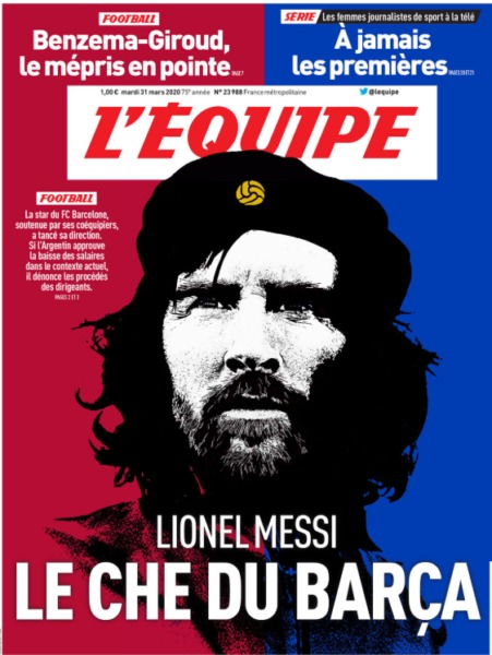 H ηγετική στάση που κράτησε ο Μέσι και η ανάληψη πρωτοβουλίας έβαλε σε σκέψεις τη γαλλική εφημερίδα  Equipe. Έτσι, την Τρίτη (31/3) κυκλοφόρησε με πρωτοσέλιδο που συγκρίνει τον Αργεντίνο σούπερ σταρ με τον επαναστάτη της Κούβας Ερνέστο Τσε Γκεβάρα. Στη φωτογραφία του πρωτοσέλιδου της, μάλιστα, έχει κάνει μοντάζ τα πρόσωπα του Μέσι και του Τσε. Ας σημειωθεί ότι γνωστός και ως Τσε ήταν Αργεντίνος γιατρός, κομμουνιστής επαναστάτης. Αποτελούσε έναν από τους αρχηγούς των ανταρτών στην Κούβα και πολιτικός. Συμμετείχε στο κίνημα της 26ης Ιουλίου που πέτυχε την ανατροπή του δικτατορικού καθεστώτος, Φουλχένσιο Μπατίστα στην Κούβα.
