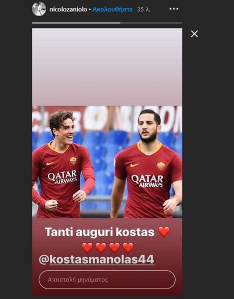 Οι ευχές δεν σταμάτησαν όμως εδώ. Πολλές ευχές στον Κώστα Μανωλά έδωσε και ο πρώην συμπαίκτης του στη Ρόμα, Τζανιόλο μέσα από το ίνσταγκραμ.