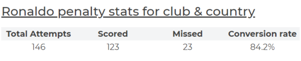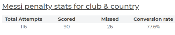 Επειδή, όμως, θέλαμε να είμαστε πιο ακριβείς στις μετρήσεις μας, ψάξαμε το ποσοστό ευστοχίας του Μέσι και του Κριστιάνο στα πέναλτι σε συλλογικό αλλά και σε εθνικό επίπεδο.