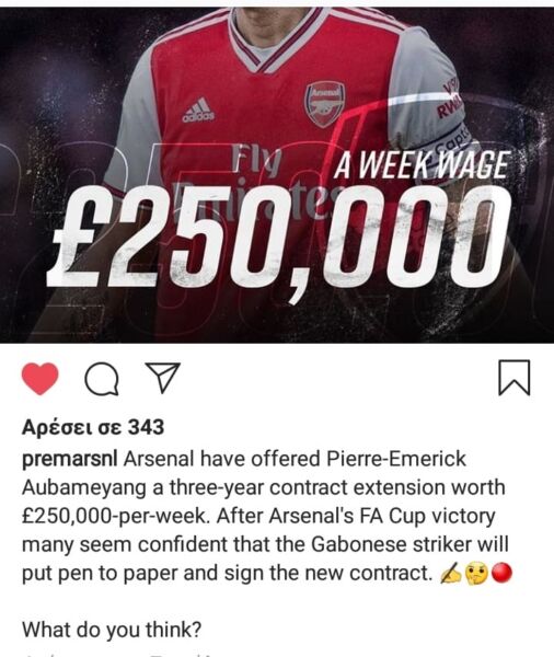 Με ΜΜΕ του εξωτερικού να αναφέρουν πως θα πράξουν άμεσα το αυτονόητο! Ένα νέο, παχυλό, «χρυσό» συμβόλαιο στον Ομπαμεγιάνγκ. Το οποίο θα ανέρχεται στις 250.000 λίρες την εβδομάδα! Ναι, καλά είδατε! Οι άνθρωποι της Άρσεναλ είναι έτοιμοι να ανταμείψουν τον έμπειρο φορ με τον καλύτερο τρόπο. Όπως του αξίζει άλλωστε!