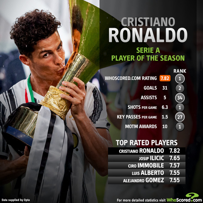 Για δεύτερη συνεχόμενη χρονιά ο Κριστιάνο Ρονάλντο αναδεικνύεται ως ο καλύτερος παίκτης του ιταλικού πρωταθλήματος βάσει στατιστικών στοιχείων.
