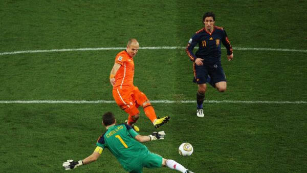 To σκηνικό γνωστό: ο Ρόμπεν έχει βγει μόνος του απέναντι στον Κασίγιας. Ένα από τα κορυφαία πλασέ της Ιστορίας, απέναντι στον ίσως κορυφαίο τερματοφύλακα όλων των εποχών, στο σημαντικότερο παιχνίδι ενός επαγγελματία ποδοσφαιριστή. Ο επιθετικός των «οράνιε» σουτάρει, όμως ο Ίκερ έχει καλύψει όσο περισσότερο χώρο μπορεί. Ξαφνικά τα 7 μέτρα μήκος του τέρματος φαίνονται σαν κεφάλι καρφίτσας. Η μπάλα βρίσκει στο δεξί πόδι του, ενώ ο ίδιος πέφτει από την αριστερή πλευρά. Ο κίνδυνος έχει απομακρυνθεί και οι συμπατριώτες του πίσω στην Ισπανία πανηγυρίζουν. Γνωρίζουν πως πλέον δεν πρόκειται να χάσουν αυτό τον τελικό. Και δεν τον έχασαν. Σε πολλά μέρη της Ισπανίας, ακόμα πίνουν νερό στο όνομα του «Σαν Ίκερ», ο οποίος χάρισε στην πατρίδα του το πρώτο της Παγκόσμιο Κύπελλο.