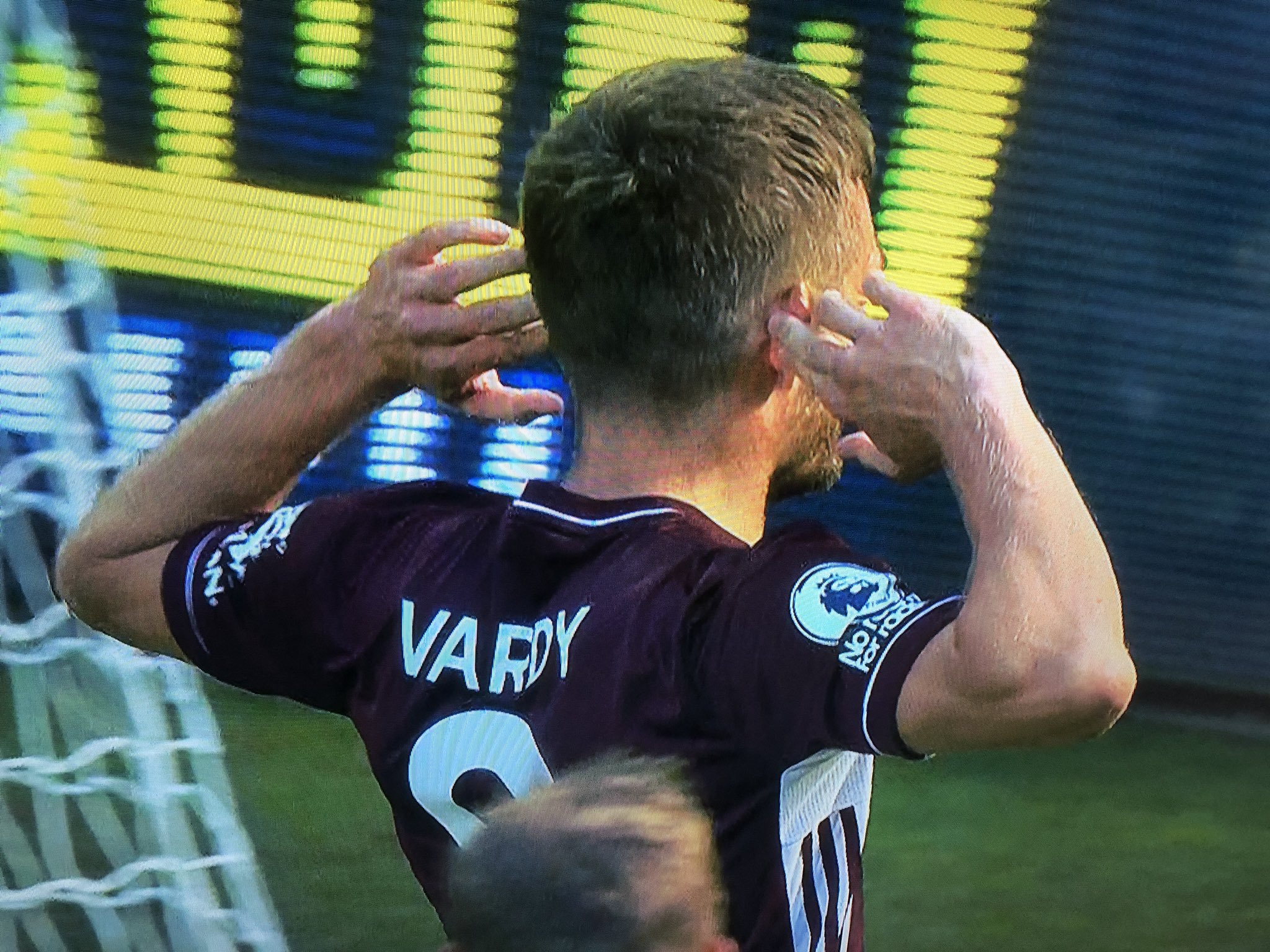 Και τα δύο από την “άσπρη βούλα”. Ωστόσο, αυτό μικρή σημασία έχει. Δεν πρέπει να μείνουμε μόνο στα τέρματα ή το ιδανικό ξεκίνημα του Βάρντι. Αλλά στον πανηγυρισμό του που έγινε πρώτο θέμα σε όλη την Αγγλία! Ο λόγος; Λίγο μετά την εύστοχη εκτέλεση πέναλτι ο Άγγλος στράικερ πήγε μπροστά από τις εξέδρες των γηπεδούχων και έκανε ότι δεν… ακούει.