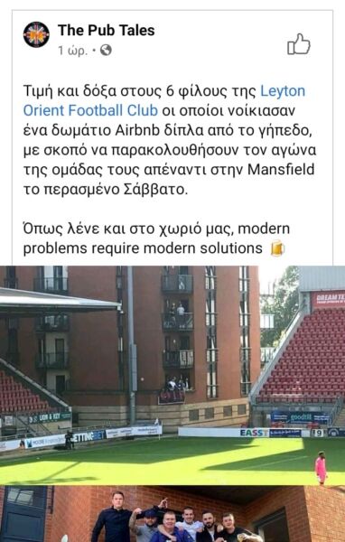 Έξι οπαδοί της Λέιτον Όριεντ νοίκιασαν δωμάτια Airbnb δίπλα στο γήπεδο για να δουν αγώνα της αγαπημένης τους ομάδας. Ο ρομαντισμός δεν φεύγει ποτέ...