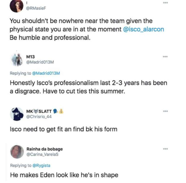 Ο 28χρονος μέσος, πάντως, δε βοηθάει τον εαυτό του, ώστε να πείσει τον Ζιντάν να πάρει περισσότερο χρόνο συμμετοχής. Ειδικότερα, πρόσφατες εικόνες που δημοσιεύτηκαν από τις προπονήσεις της ομάδας τον δείχνουν με περιττά κιλά. Το γεγονός, μάλιστα, ότι μπροστά του ο Αζάρ μοιάζει στεγνός προκάλεσε πληθώρα αρνητικών σχολίων στα μέσα κοινωνικής δικτύωσης.