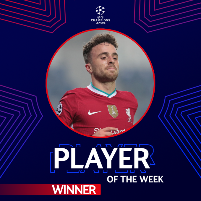 Έπειτα από online ψηφοφορία, ο Πορτογάλος αναδείχθηκε καλύτερος παίκτης της εβδομάδας στη διοργάνωση. Ξεπερνώντας έτσι, τους Αλασάν Πλεά (Γκλάντμπαχ), Έρλινγκ Χάαλαντ (Ντόρτμουντ) και Γιουσέφ Εν-Νεσίρι (Σεβίλλη). Ο 23χρονος επιθετικός έφτασε τα 7 γκολ σε 10 εμφανίσεις του με τη Λίβερπουλ, 6 εκ των οποίων τα πέτυχε στα 4 τελευταία ματς.