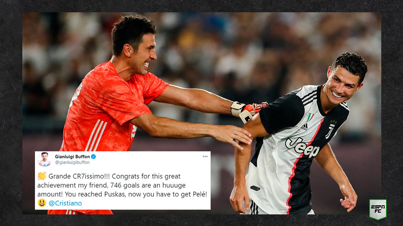 “Μεγάλος Κριστιάνο Ρονάλντο. Μπράβο για το νέο κατόρθωμά σου φίλε μου! 746 είναι πάρα πολλά τέρματα! Έφτασες τον Πούσκας. Τώρα σειρά έχει ο Πελέ”, το μήνυμα του Ιταλού τερματοφύλακα με τον Κριστιάνο να απαντάει: