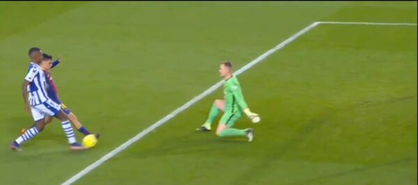 Χαρακτηριστική εικόνα μια φάση του δευτέρου ημιχρόνου. Ο επιθετικός της Ρεάλ Σοσιεδάδ, Ισάκ βρέθηκε σε θέση βολής απέναντι από τον τερ Στέγκεν. Ο Πέδρι διέσχισε το μισό γήπεδο ακολουθώντας τον αντίπαλο του βάζοντας στο φινάλε το πόδι του για να απομακρύνει τον κίνδυνο. Ο νεαρός δεν πρόσεξε στιγμή πως η προσπάθειά του θα μπορούσε να του αποφέρει κάλλιστα έναν σοβαρό τραυματισμό. Ο Πέδρι προσέκρουσε άσχημα στο κάθετο δοκάρι, όμως με το πάθος που είχε εκείνη τη στιγμή δεν κατάλαβε ποτέ τον πόνο.