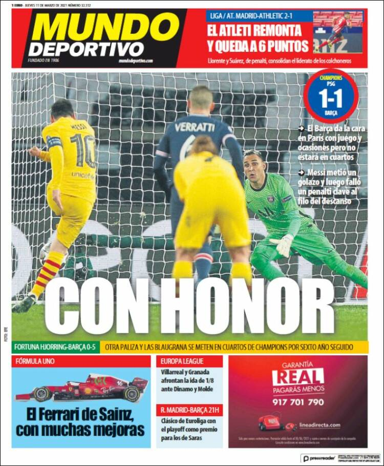 Ε και; Ο ισπανικός Τύπος αποθέωσε τον Λιονέλ Μέσι και την παρέα του. “Με τιμή” έγραψε η “Mundo Deportivo”, ενώ η “AS” είχε στην πρώτη της σελίδα: “Δεν φτάνει μόνο η υπερηφάνεια”.