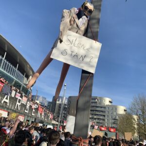 Χιλιάδες φίλοι της αγγλικής ομάδας, σύμφωνα με τα περισσότερα αγγλικά ΜΜΕ το “παρών” έδωσαν 15.000, βροντοφώναξαν κατά της διοίκησης και του Σταν Κροένκε.