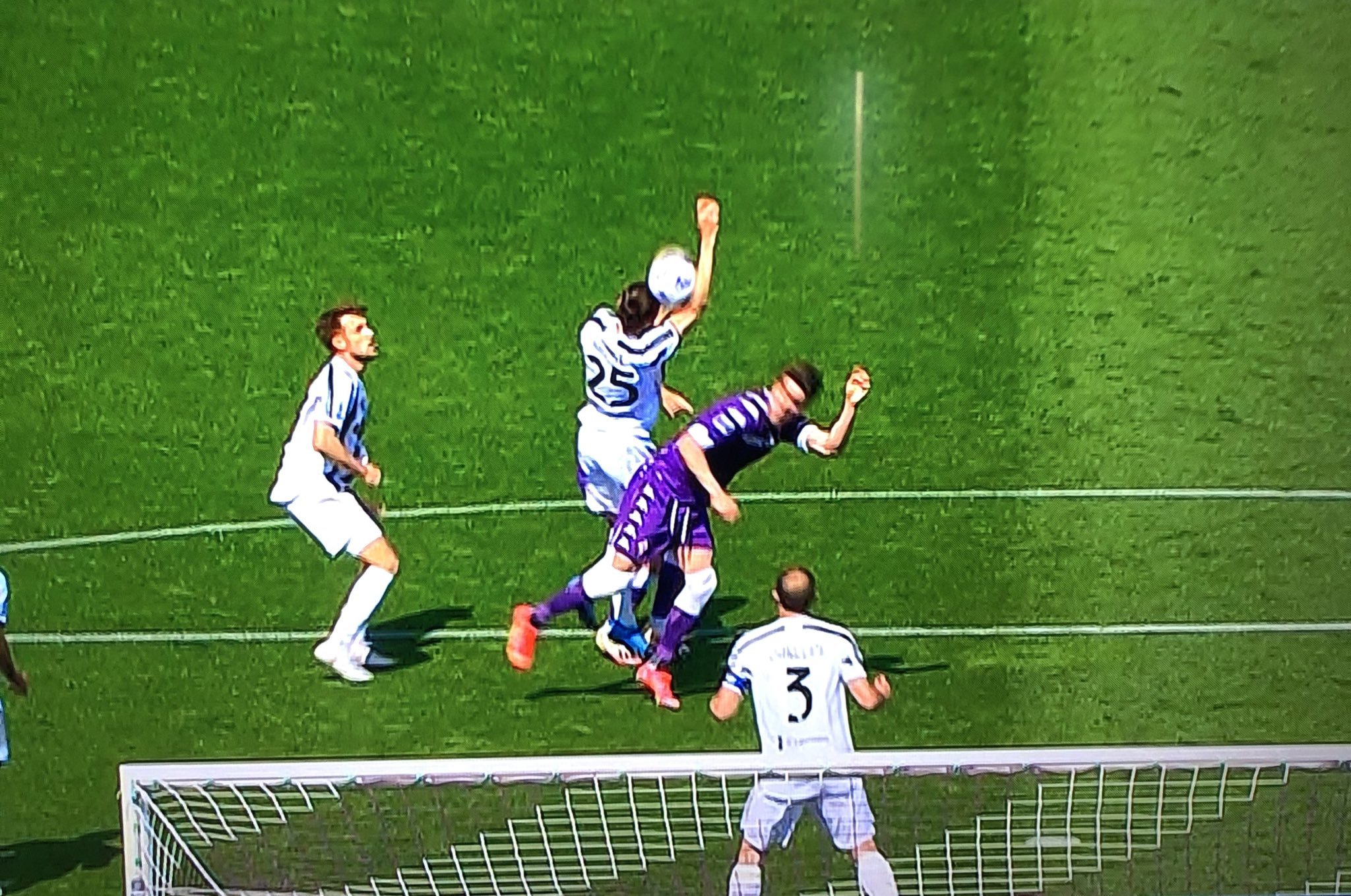 Ωστόσο, απέναντι στους “βιόλα” ο έμπειρος χαφ έκανε το πιο χαζό πέναλτι της καριέρας του. Η μπάλα ήταν πολύ ψηλά και εκείνος αντί να την κατεβάσει με έναν εύκολο ή πιο απλό τρόπο, ή έστω για την απομακρύνει όπως- όπως έβαλε πολύ άσχημα το χέρι του.