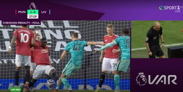 After a VAR review, Eric Bailly is adjudged to have played the ball…