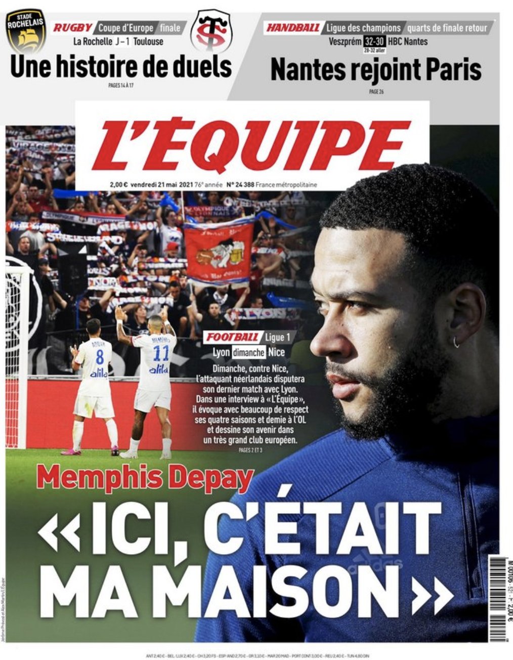 Memphis Depay confirms to L’Equipe that he’ll be leaving Lyon this summer.