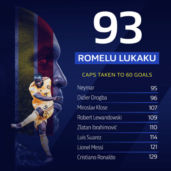 Πέρα από την ηλικία, ο Ρομέλου Λουκάκου πέτυχε το 60ό του γκολ και σε λιγότερες συμμετοχές σε σχέση με τους υπόλοιπους. Ο αριστεροπόδαρος επιθετικός χρειάστηκε 93 εμφανίσεις για να πετύχει εξήντα τέρματα. Δυο λιγότερες συγκριτικά με τον Νεϊμάρ και τρεις με τον Ντιντιέ Ντρογκμπά.