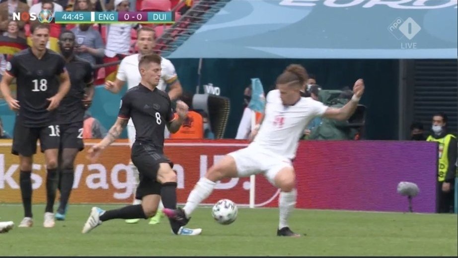 Μία από εκείνες τις μονομαχίες που έκανε πολλούς να σηκωθούν από τις θέσεις τους ήταν ανάμεσα στον Κάλβιν Φίλιπς και τον Τόνι Κρόος με τον Άγγλο μέσο να ρίχνει μία δυνατή «σκαριά» στον Γερμανό μέσο που είδε τον αστράγαλό του, έστω και για λίγο, να… διπλώνει!
