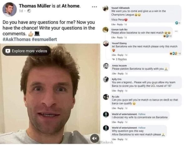 Έτσι, οι φίλοι της ομάδας δοκίμασαν μια… ιδιαίτερη μέθοδο, με αποδέκτη τον Τόμας Μίλερ. Σε μια απλή δημοσίευση του Γερμανού που ήθελε να επικοινωνήσει με το κοινό του, έγινε… χαμός. Οι φίλοι των «μπλαουγκράνα» έκαναν ουρά στα σχόλια, ζητώντας έλεος. Και τα περισσότερα σχόλια εξ αυτών είχαν… παρακάλια για να αφήσουν οι Γερμανοί την ομάδα τους να προκριθεί.