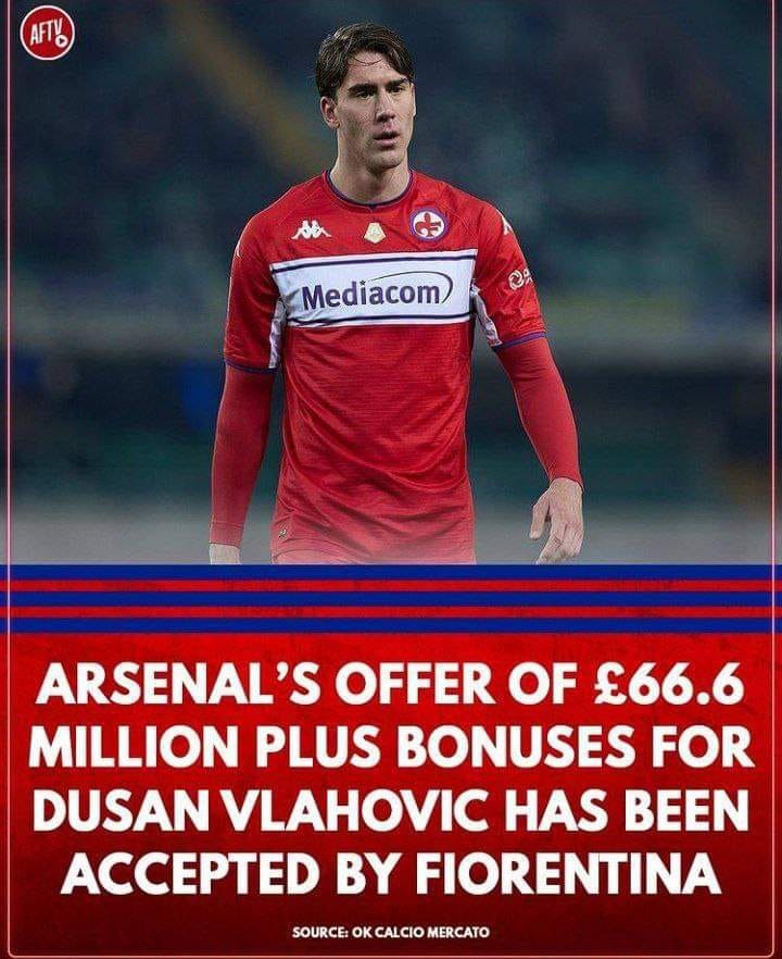 Σύμφωνα με το «Calciomercato» η Φιορεντίνα έκανε αποδεκτή την πρόταση της Άρσεναλ για τον Ντούσαν Βλάχοβιτς που ξεπερνάει τα 60 εκ. λίρες!