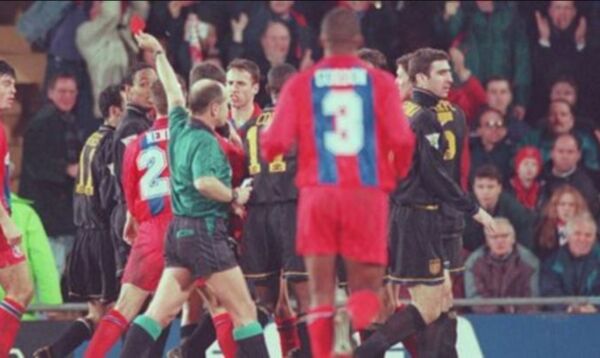 Η κλωτσιά του, δεν θα ήταν καν η δυνατότερη που έριξε εκείνο το απόγευμα. Ο διαιτητής της αναμέτρησης, έχοντας δει όλη τη φάση βγάζει άμεσα την κόκκινη κάρτα και στέλνει τον Γάλλο στα αποδυτήρια. Ενώ ο κορυφαίος παίκτης της Γιουνάιτεντ βρισκόταν δίπλα στις εξέδρες, πλησιάζοντας τη φυσούνα των αποδυτηρίων, έγινε κάτι που κανείς δεν κατάλαβε τα πρώτα δευτερόλεπτα.