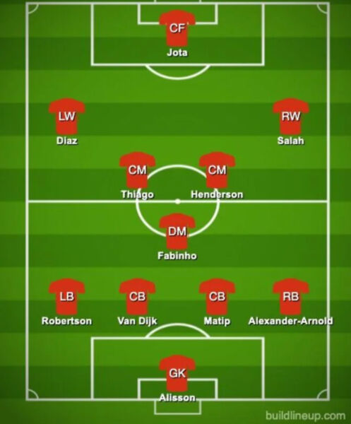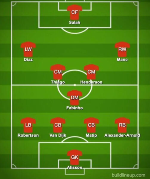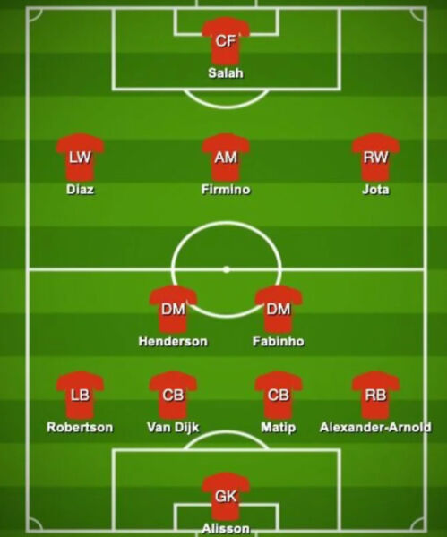 Για να χωρέσουν Μανέ και Ντίαζ στην ενδεκάδα, τότε θα πρέπει ο Σενεγαλέζος να αγωνιστεί ως δεξιός εξτρέμ. Για να μη χάσει τη θέση του στην ενδεκάδα ο Σαλάχ, θα αγωνιστεί στην κορυφή της επίθεσης. Ο Αιγύπτιος έχει παίξει ξανά εκεί στο παρελθόν και έχει ανταποκριθεί. Ωστόσο, αποτελεί ερώτημα η παρουσία του Μανέ στα δεξιά ενώ η Λίβερπουλ μπορεί να χάσει και τα γκολ του Ζότα.