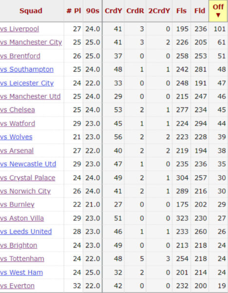 Στο εκτός έδρας ματς με την Μπέρνλι, οι γηπεδούχοι υποδείχθηκαν σε θέση οφσάιντ 7 φορές. Ωστόσο, επειδή το σημαιάκι σηκωνόταν αργά λόγω της οδηγίας για το VAR, δημιουργήθηκε η εντύπωση ότι η Μπέρνλι απειλούσε πολύ περισσότερο.