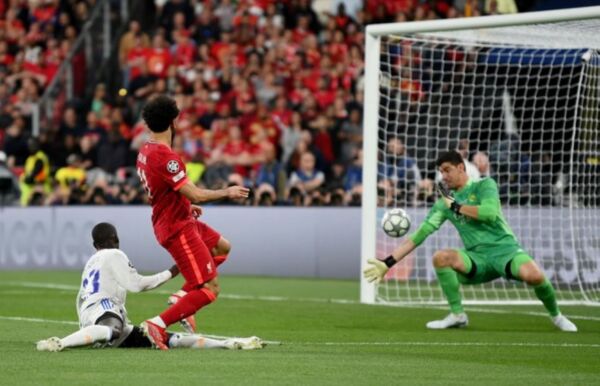 Η πρώτη μεγάλη φάση του αγώνα ήρθε από τα πόδια του Μοχάμεντ Σαλάχ. Ο Αιγύπτιος πάτησε περιοχή, βρέθηκε στο κατάλληλο σημείο και έκανε το σουτ. Ο Τιμπό Κουρτουά αντέδρασε εκπληκτικά απομακρύνοντας τον κίνδυνο στο 21ο λεπτό. Στη συνέχεια και μέχρι το 40′ η Λίβερπουλ ήταν αυτή που πατούσε την αντίπαλη περιοχή. Η επόμενη μεγάλη ευκαιρία ανήκε στον Μανέ. Ο Σενεγαλέζος έκανε τον ελιγμό, επιχείρησε το σουτ όμως ο Κουρτουά απέκρουσε εκπληκτικά. Ο Βέλγος βρήκε τη μπάλα και αυτή στη συνέχεια προσέκρουσε στο κάθετο δοκάρι της Λίβερπουλ. Λίγο πριν το φινάλε η Ρεάλ λίγο έλειψε στην πρώτη της ευκαιρία να κάνει τη διαφορά. Ο Μπενζεμά έστειλε τη μπάλα στα δίχτυα του Άλισον. Ο διαιτητής ακύρωσε το γκολ – μέσω VAR – καταλογίζοντας οφσάιντ. Έτσι ολοκληρώθηκε το πρώτο μέρος.