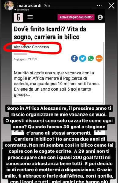 Ο Μάουρο Ικάρντι δεν άφησε αναπάντητα τα δημοσιεύματα από τα ιταλικά μέσα ενημέρωσης. Ειδικότερα, αυτά τον έχουν συνδέσει με μία μεταγραφή μακριά από την Παρί Σεν Ζερμέν.
