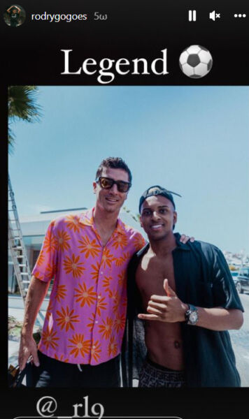 Οι Ρόμπερτ Λεβαντόφσκι και Ροντρίγκο συναντήθηκαν εν μέσω των καλοκαιρινών τους διακοπών, με τον τελευταίο να αναρτά σχετικό story.