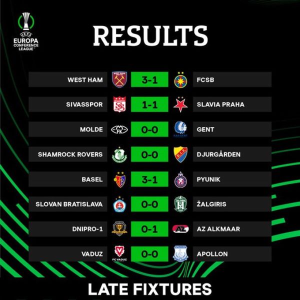 To Europa Conference League μάς χαρίζει συγκινήσεις από πέρσι και αν μη τι άλλο πρόκειται για τολμηρούς στοιχηματικούς παίκτες… Έτσι έγινε και στην πρεμιέρα της δεύτερης διοργάνωσης στην ιστορία του ποδοσφαίρου. Η δύσκολη νίκη της Γουέστ Χαμ (με ανατροπή) επί της Στεάουα με 3-1, το σπουδαία διπλό της Αλκμάαρ επί της Ντνίπρο (1-0) και η άνετη επικράτηση της Βασιλείας επί της Πιούνικ (3-1) ξεχώρισαν στο δεύτερο σκέλος της 1ης αγωνιστικής των ομίλων του Europa Conference League, όπου κυριάρχησαν οι “λευκές” ισοπαλίες (τέσσερις τον αριθμό).