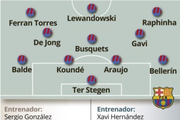 Η Mundo Deportivo παρουσιάζει την πιθανή ενδεκάδα της Μπαρτσελόνα για το αποψινό παιχνίδι. Κάτω από τα δοκάρια θα βρίσκεται σε ακόμη ένα παιχνίδι ο Μαρκ Τερ Στέγκεν. Στα αριστερά της άμυνας θα δούμε τον ταλαντούχο Μπαλντέ. Όσον αφορά τα στόπερ για πρώτη φορά ο Τσάβι θα δοκιμάσει το δίδυμο που οι περισσότεροι βλέπουν για το μέλλον. Αραούχο και Κουντέ μαζί. Στα δεξιά θα δούμε για πρώτη φορά τον Έκτορ Μπεγιερίν.
