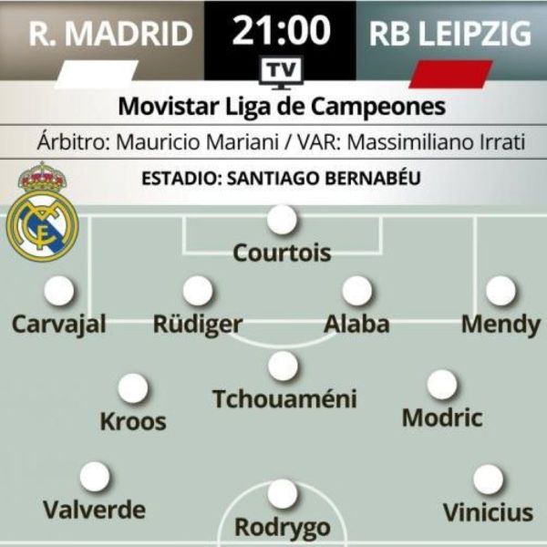 Ο Κάρλο Αντσελότι δείχνει να εμπιστεύεται περισσότερο τον νεαρό Βραζιλιάνο παρά τον Αζάρ. Έτσι τον τοποθετεί στην κορυφή έχοντας δίπλα του συμπαραστάτες στα φτερά τους Βαλβέρδε και Βινίσιους. Πίσω, στη μεσαία γραμμή ο Τσουαμενί δεσπόζει σε ρόλο 6αριου, με το Γάλλο να έχει πλάι του τους Κρόος κα Μόντριτς. Στην άμυνα, Καρβαχάλ, Ρούντιγκερ, Αλάμπα και Μεντί. Ενώ η θέση του τερματοφύλακα είναι απλά κλειδωμένη. Τιμπό Κουρτουά!