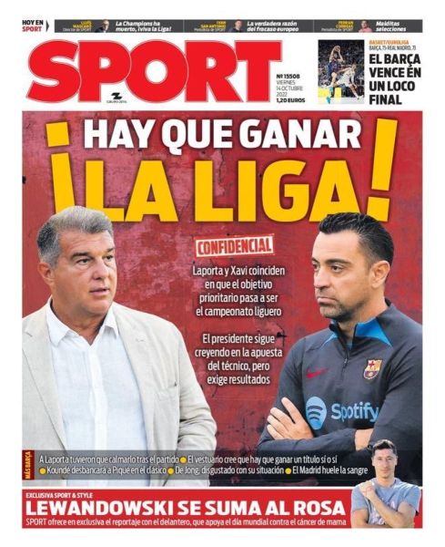 Η Μπαρτσελόνα αν αποτύχει στο Champions League – κάτι που έρχεται – πρέπει να κατακτήσει τουλάχιστον τους εγχώριους τίτλους. Πρωτάθλημα και κύπελλο Ισπανίας. Σε διαφορετική περίπτωση, αν ο Τσάβι δε φέρει κανένα τίτλο στο Καμπ Νου ο σύλλογος θα έχει πάλι τεράστια οικονομικά προβλήματα. Ο Ζοάν Λαπόρτα εξήγησε ενδελεχώς στον προπονητή των Καταλανών πως οι επιτυχίες είναι αλληλένδετες με το οικονομικό στάτους της ομάδας. Θα πρέπει η Μπαρτσελόνα να κατακτήσει τίτλους, σε διαφορετική περίπτωση το καλοκαίρι θα είναι αναγκασμένη να ξηλώσει ό,τι δημιούργησε φέτος.
