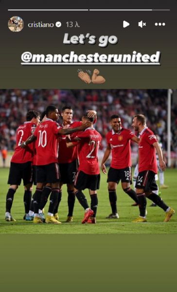 Συγκεκριμένα, ο CR7 ανέβασε ιστορία στο Instagram του με ομαδική φωτογραφία της Γιουνάιτεντ. «Πάμε Μάντσεστερ Γιουνάιτεντ», έγραψε ο Κριστιάνο, θέλοντας να ρίξει κι άλλο τους τόνους αναφορικά με την κατάστασή του στην ομάδα…