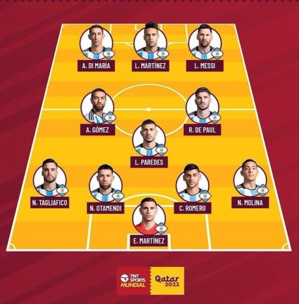 Η ενδεκάδα της Αργεντινής λάμπει! Δεν είναι μόνο ο Λιονέλ Μέσι, ο οποίος φιγουράρει στην τριάδα της επίθεσης. Έντεκα εξαιρετικοί ποδοσφαιριστές συνθέτουν ένα πάνοπλο σύνολο. Ο Μαρτίνες θα βρίσκεται κάτω από τα δοκάρια. Στην άμυνα δεσπόζουν οι Οταμέντι και Ρομέρο στο κέντρο. Στις πλευρές Ταλιαφίκο και Μολίνα. Στον χώρο του κέντρου ο Παρέδες θα έχει πλάι του τους Ντε Πολ και Πάπου Γκόμες. Τέλος στη γραμμή κρούσης θα βρίσκονται οι Μέσι, Ντι Μαρία και Λαουτάρο Μαρτίνες.