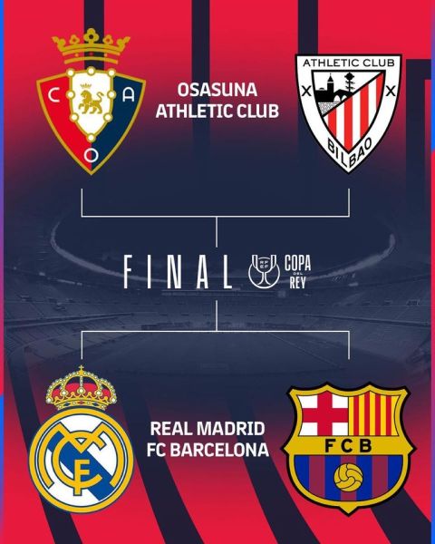 Ήθελαν ιδανικά να βρεθούν στον τελικό της διοργάνωσης! Η κληρωτίδα όμως δεν τους έκανε το χατίρι και τους έφερε πλάι πλάι στα ημιτελικά του Copa del Rey. Μπαρτσελόνα και Ρεάλ Μαδρίτης θα βρεθούν αντιμέτωπες με έπαθλο το εισιτήριο για τον τελικό του θεσμού. Ένα ακόμη clasico που περιμένει όλος ο ποδοσφαιρικός πλανήτης. Το άλλο ζευγάρι της ημιτελικής φάσης βρίσκει την Οσασούνα απέναντι στην Αθλέτικ Μπιλμπάο.