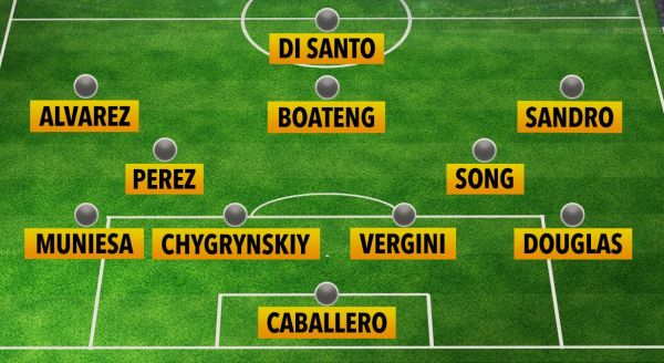 Αναλυτικά: Καμπαγιέρο, Βερτζίνι, Τσιγκρίνσκι, Ντάγκλας, Μουνιέσα, Πέρεθ, Σονγκ, Σάντρο, Μπόατεντγκ, Άλβαρεζ, Ντι Σάντο