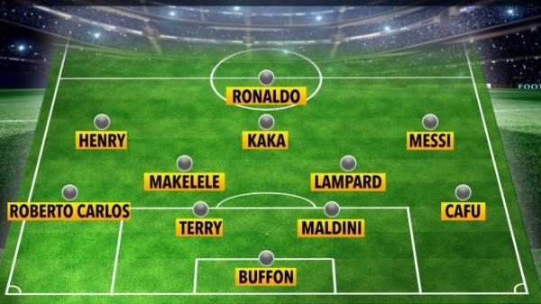 Αναλυτικά η ενδεκάδα που επέλεξε ο Ροναλντίνιο: Μπουφόν, Μαλντίνι, Καφού, Τέρι, Ρομπέρτο Κάρλος, Μακελελέ, Λάμπαρντ, Μέσι, Κακά, Ανρί, Ρονάλντο