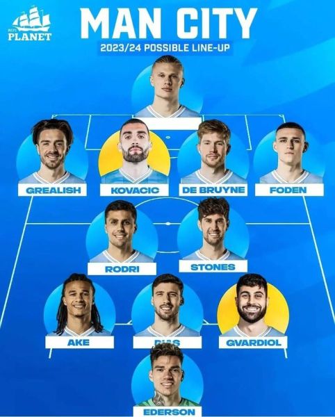 Έτσι η ενδεκάδα… φόβητρο για κάθε αντίπαλο σε Αγγλία και Ευρώπη θα διαμορφωθεί ως εξής: Ο Έντερσον θα βρίσκεται ξανά κάτω από τα δοκάρια της εστίας της Μάντσεστερ Σίτι. Στην άμυνα ο Γκουαρντιόλα θα παίξει με τριάδα έχοντας τους Ρούμπεν Ντίας, Γκβάρντιολ και Άκε. Στον χώρο του κέντρου, ο Ρόντρι θα έχει στο πλάι του τον Στόουνς ενώ μπροστά τους θα βρίσκονται οι Ντε Μπρούιν, Κόβασιτς, Γκρίλις και Φόντεν. Στην επίθεση δεν τίθεται ερώτημα, Έρλινγκ Χάαλαντ.