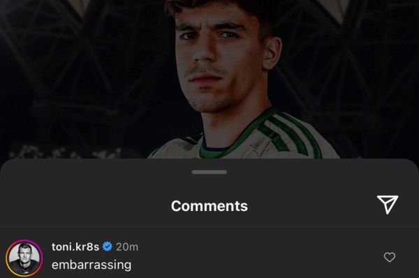 Το σχόλιο του Τόνι Κρόος κάτω από την ανάρτηση του Ρομάνο