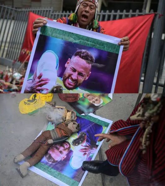 Με αυτή την λογική, μία ομάδα θεραπευτών από τις ζούγκλες, τα βουνά και τις παράκτιες περιοχές του Περού, προσπαθούν να βοηθήσουν την ομάδα με κάθε τρόπο που μπορούν. Έτσι, έφτιαξαν μία κούκλα του Νεϊμάρ και της έδεσαν τα πόδια, ενώ ένας πολύχρωμος βωμός με σπαθιά, φυλαχτά, σημαίες και φωτογραφίες παικτών και των δύο ομάδων υπήρχουν στην τελετή που έγινε έξω από το εθνικό στάδιο του Περού.