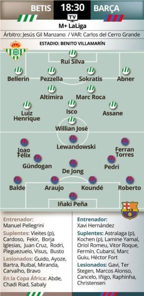 Η Μπαρτσελόνα καλείται να βγει αλώβητη από αυτή τη δύσκολη δοκιμασία. Να περάσει με το τρίποντο από την έδρα της Μπέτις και να μαζέψει την απόστασή της από τη κορυφή της La Liga. Για να το πετύχει όμως αυτό θα πρέπει να ιδρώσει. Θα πρέπει να κοπιάσει. Ο Τσάβι ξέρει πως απέναντί του θα βρει μια πολύ καλή ομάδα. Για τον λόγο αυτό ο Καταλανός προπονητής καταστρώνει τα σχέδιά του για τον αγώνα έχοντας στο μυαλό του πως θα κατεβάσει την καλύτερη δυνατή ενδεκάδα.