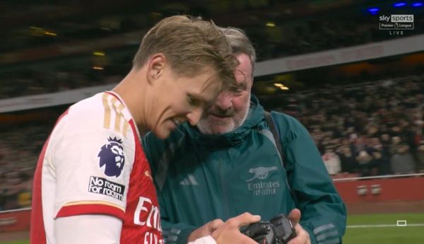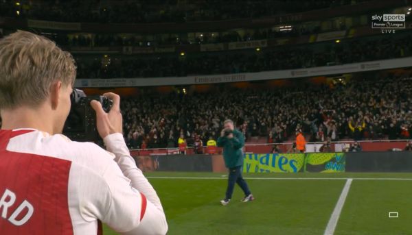 Ο Μάρτιν Όντεγκαρντ, μετά το τελευταίο σφύριγμα ήταν από τους πρώτους που έσπευσε να πανηγυρίσει μαζί με τον κόσμο της Άρσεναλ. Μάλιστα, είχε τέτοια όρεξη -και λογικό εδώ που τα λέμε- που πήρε την κάμερα από τα χέρια του επίσημου φωτογράφου των Λονδρέζων, Στίουαρτ ΜακΦαρλέιν, ο οποίος είναι φανατικός υποστηρικτής της ομάδας του Βορείου Λονδίνου.