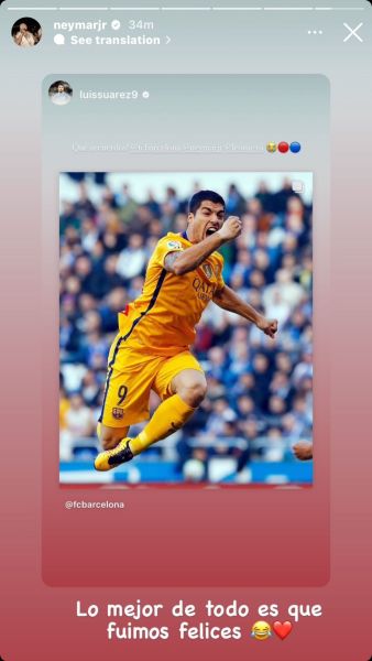 Ο Νεϊμάρ σχολίασε μία φωτογραφία που αναδημοσίευσε ο Ουρουγουανός killer και έγραψε το εξής: «Το πιο σημαντικό για όλους μας ήταν ότι ήμασταν όλοι χαρούμενοι». Αν μη τι άλλο ένα σημαντικό σχόλιο για εκείνες τις ημέρες, όπου το MSN μεσουρανούσε και ένα μικρό δείγμα για το κλίμα που επικρατούσε στις τάξεις των Καταλανών που εκείνη την εποχή πήγαιναν από νίκη σε νίκη και σημείωναν το ένα ρεκόρ πίσω από το άλλο χάρη στα γκολ που πανηγύριζαν τα μεγάλα τους αστέρια.