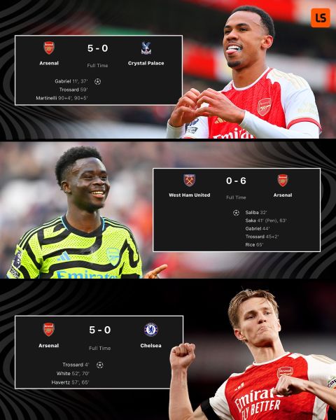 Ωστόσο, όλα αυτά έχουν γίνει και από άλλους συλλόγους. Αυτό δεν είχε συμβεί ποτέ ξανά στην κορυφαία κατηγορία του αγγλικού ποδοσφαίρου είναι μία ομάδα από το Λονδίνο να πάρει τρεις νίκες σε τρία ντέρμπι με παραπάνω από πέντε γκολ διαφορά. Αυτό το έκανε φέτος -και συγκεκριμένα μέσα στο 2024- το σύνολο του Μίκελ Αρτέτα, όπου επικρατώντας της εντός έδρας της Κρίσταλ Πάλας και της Τσέλσι με το ίδιο σκορ (5-0) και εκτός έδρας 6-0 της Γουέστ Χαμ έγραψε ιστορία ως η πρώτη ομάδα που το καταφέρνει αυτό!