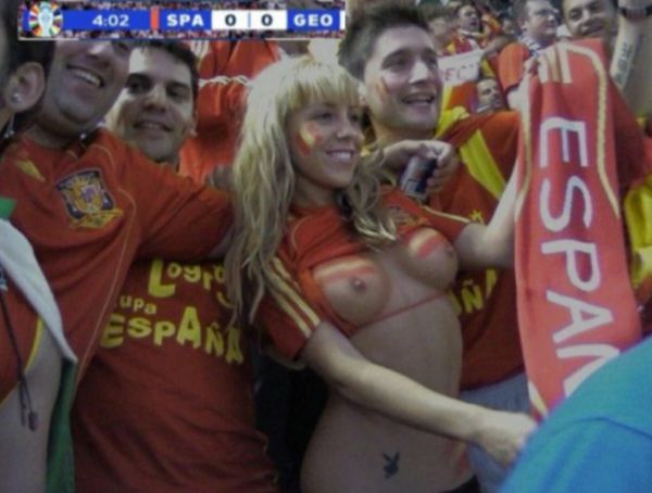 Και όταν λέμε δυναμική το εννοούμε! Το γήπεδο της Κολονίας γέμισε από όμορφες παρουσίες. Η ισπανική κερκίδα κέρδισε τη μάχη με τις αιθέριες υπάρξεις επικρατούν κατακράτος των Γεωργιανών. Ο τηλεοπτικός φακός δεν μπόρεσε να αντισταθεί στην εικόνα και στο 5ο λεπτό του αγώνα έριξε το… βλέμμα του σε μια «καυτή» Ισπανίδα. Μια οπαδό που ζεστάθηκε και θέλησε να το δείξει με τον πιο χαρακτηριστικό τρόπο. Να τα βγάλει όλα στη φόρα!