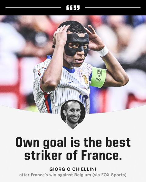 Ο Τζόρτζιο Κιελίνι είχε το σύνολο του Ντιντιέ Ντεσάν όχι μόνο να νικάει το Βέλγιο, αλλά να παίρνει και την πρόκριση για τα προημιτελικά του θεσμού. Παρόλα αυτά δεν έμεινε εντυπωσιασμένος ή ικανοποιημένος με την εικόνα των Γάλλων. Κάτι που έδειξε με όλα όσα είπε όσον αφορά το επιθετικό παιχνίδι της Γαλλίας, αφού για εκείνον τα αυτογκόλ είναι εκείνα που κάνουν τη διαφορά για τους «τρικολόρ».