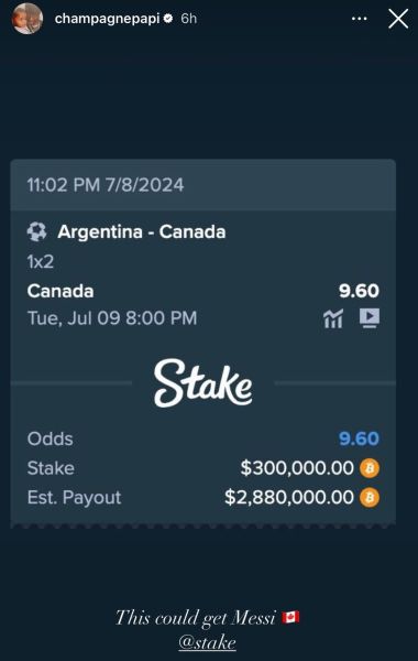 Ο Ντρέικ φαίνεται ότι πιστεύει πολύ στην εθνική ομάδα της πατρίδας του, τον Καναδά, που αγωνίζεται στα ημιτελικά με την Αργεντινή.