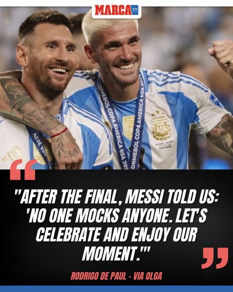 Ο Λιονέλ Μέσι φέρεται να είπε στους συμπαίκτες του ότι πρέπει να είναι χαλαροί στους πανηγυρισμούς και ότι δεν πρέπει να προκαλέσουν κανέναν. Αντιθέτως θα πρέπει να απολαύσουν τη στιγμή και να περάσουν όσο το δυνατόν καλύτερα για όλα όσα έχουν καταφέρει ειδικά, μετά από τόσο δύσκολο παιχνίδι.