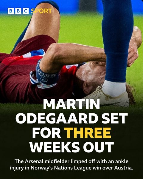 Ο Μάρτιν Όντεγκαρντ δέχτηκε ένα δυνατό μαρκάρισμα, με αποτέλεσμα ο αστράγαλός του να «διπλώσει». Το διάστρεμμα που έχει υποστεί είναι δευτέρου βαθμού. Κάτι που σημαίνει ότι θα χρειαστεί να μείνει εκτός πλάνων της Άρσεναλ για τουλάχιστον τρεις εβδομάδες, όπως τόνισε και ο γιατρός της εθνικής Νορβηγίας, Ολα Σαντ, μιλώντας στην εφημερίδα «VM», τονίζοντας ότι ο ταλαντούχος μέσος μπορεί να χρειαστεί να μείνει εκτός γηπέδων μέχρι και για έξι εβδομάδες!